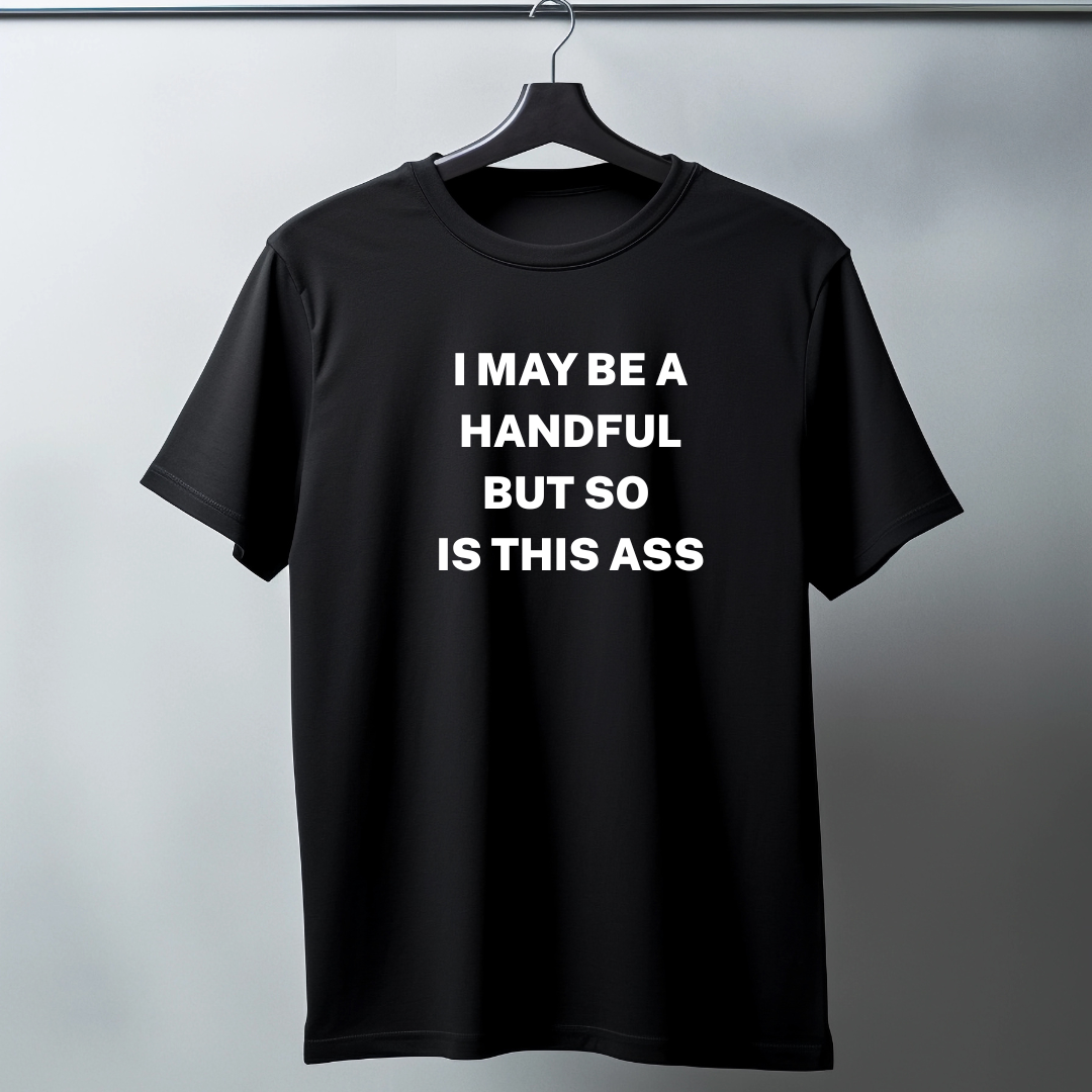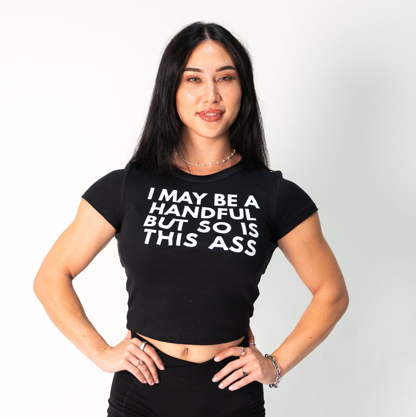 This tee was made for women who lift, love hard, and never apologize for taking up space. With a cheeky phrase that says what everyone’s already thinking, it’s your reminder that being a handful just means you’ve got substance — and strength — to match.